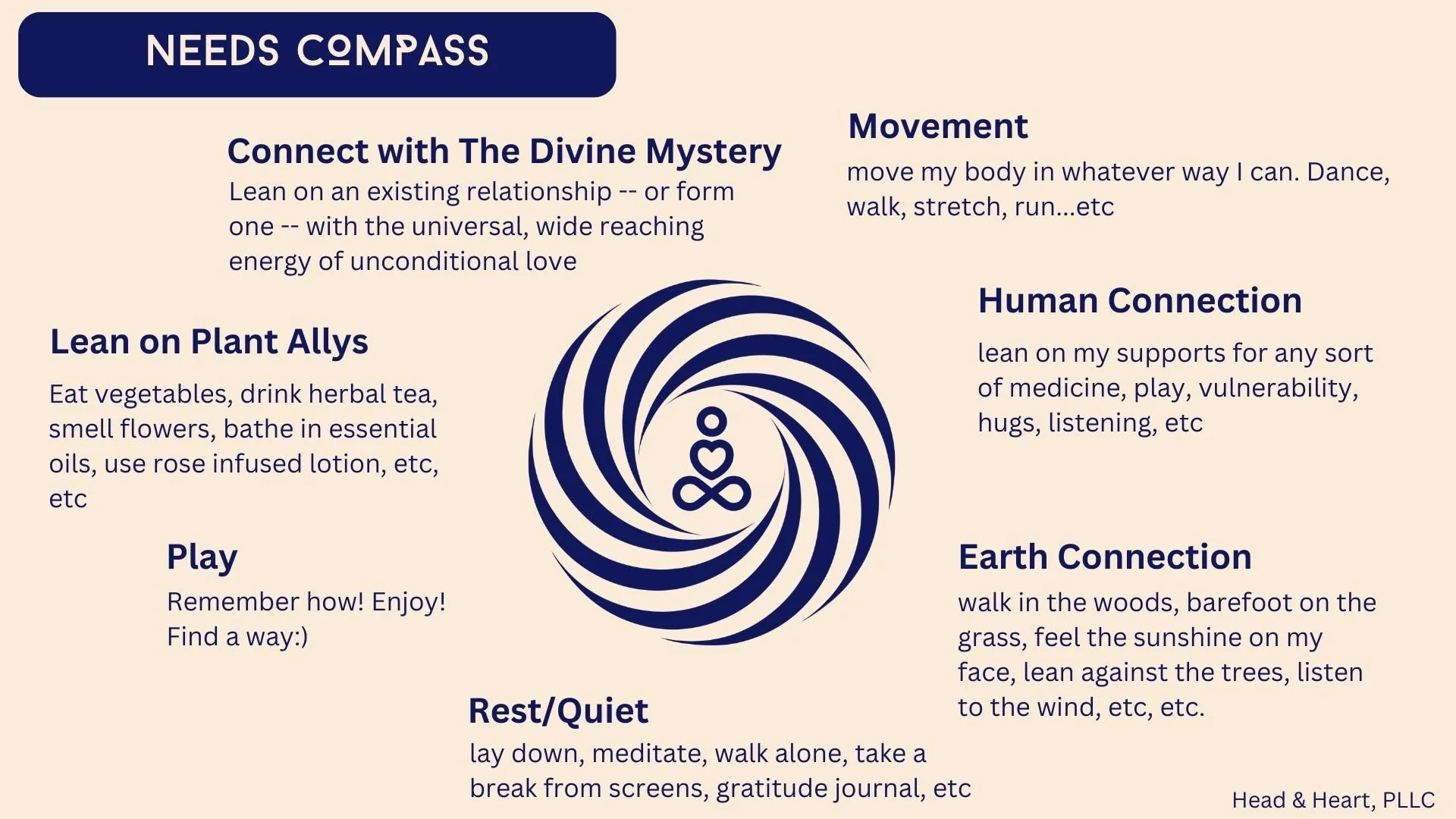 I use these skills to embrace the reciprocity of life. This “Needs Compass” helps me stay regulated rather than clenched/stressed.